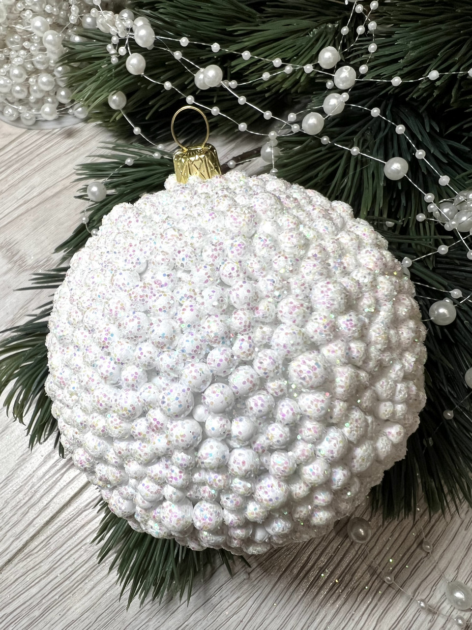 Куля новорічна, ялинкова. Куля на ялинку - білий попкорн . ( діаметр 10 см)