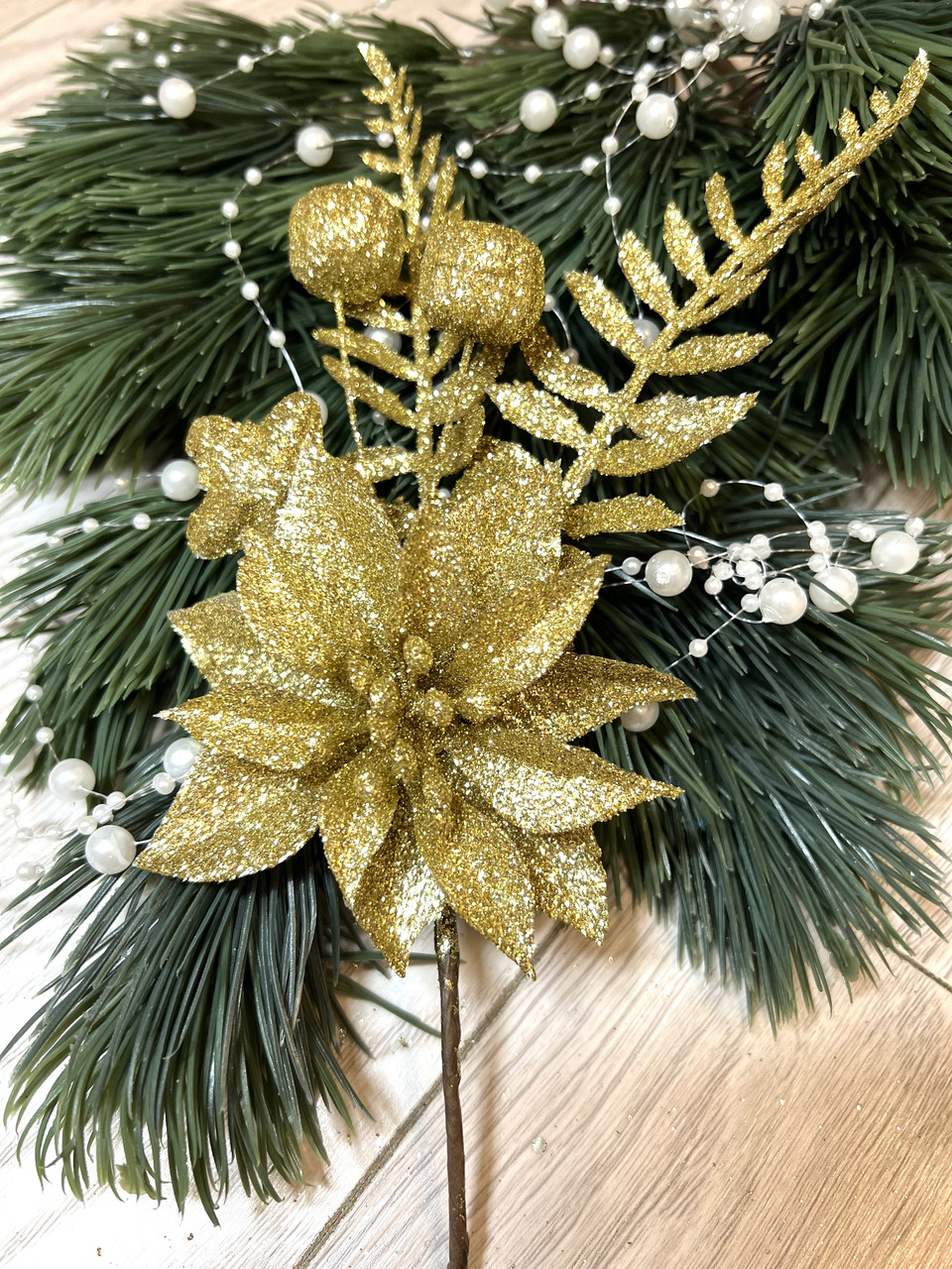Бутон'єрка новорічна. Гілочка золота для новорічного декору (22 см)